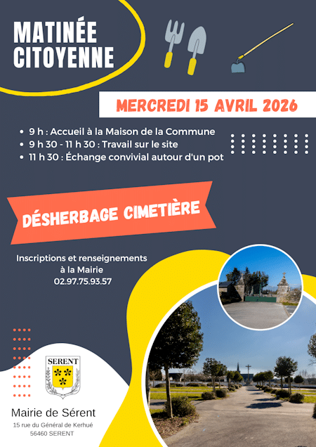 Rendez-vous le mercredi 15 avril pour le désherbage du cimetière. Retrouvez-nous à partir de 9h à la Maison de commune. Un pot de convivialité clôturera cette matinée.